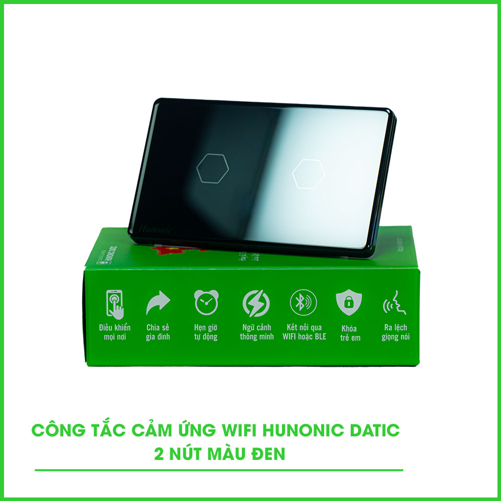 Công Tắc Cảm Ứng 2 Nút Wifi Hunonic Datic Màu Đen/Trắng